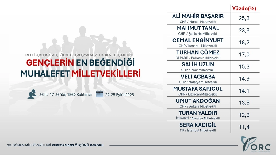 ORC Araştırma Şirketi tarafından 22–25 Eylül 2025 tarihleri arasında, 26 ilde 17–26 yaş arası 1.960 genç seçmenle yapılan araştırmaya göre; İYİ Parti Aksaray Milletvekili Turan Yaldır, gençlerin en çok beğendiği muhalefet milletvekilleri arasında yer aldı.