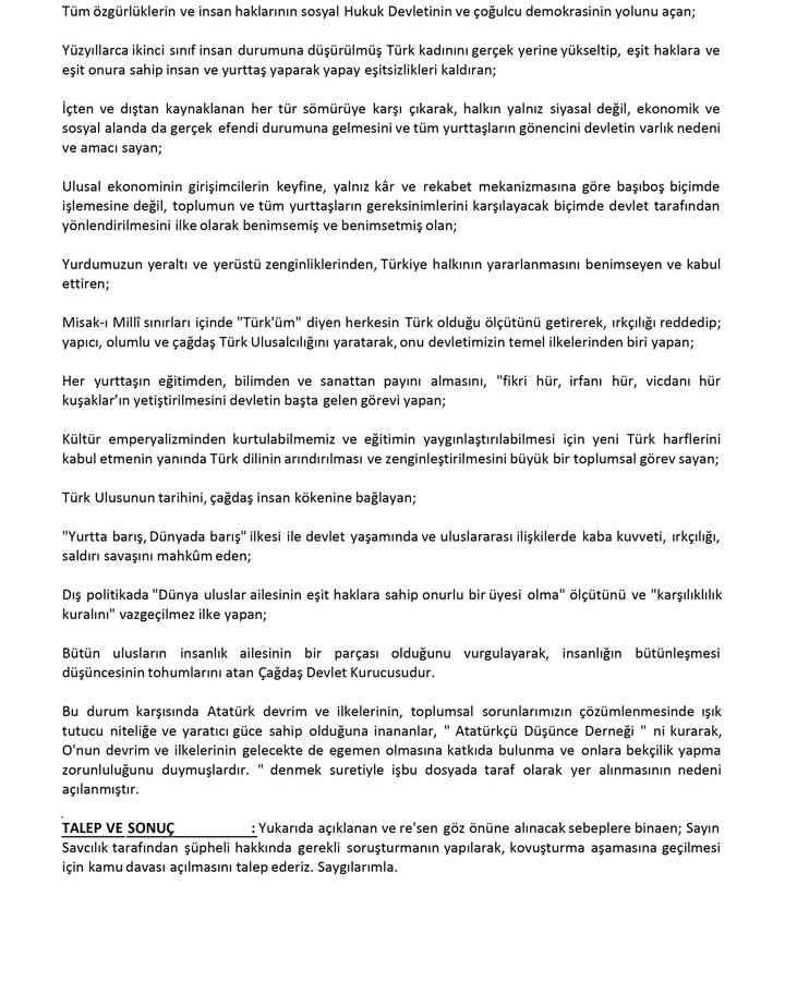 Bu uygulama kamuoyunda tartışma yaratırken, Atatürkçü Düşünce Derneği’nden dikkat çeken bir hukuki hamle geldi. Dernek, söz konusu genelgenin Türkiye Cumhuriyeti Anayasası’nın temel ilkeleriyle bağdaşmadığını savunarak yargı sürecini başlattığını duyurdu.