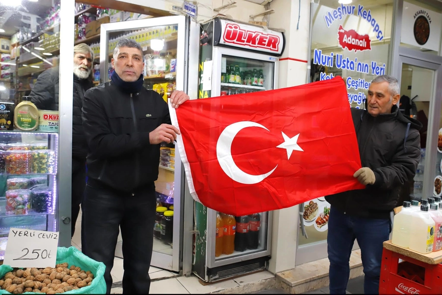 Mardin’in Nusaybin ilçesinde şanlı Türk bayrağımıza yönelik gerçekleştirilen menfur saldırı, Aksaray’da büyük bir infiale yol açtı. Aziz Türk bayrağına uzanan kirli ellere karşı Aksaray esnafı ve halkı, ay-yıldızlı bayraklarla sokaklara çıkarak güçlü ve anlamlı bir duruş sergiledi. Kent genelinde oluşan bu milli refleks, “Aksaray tek yürek” sözünü bir kez daha somut şekilde ortaya koydu.