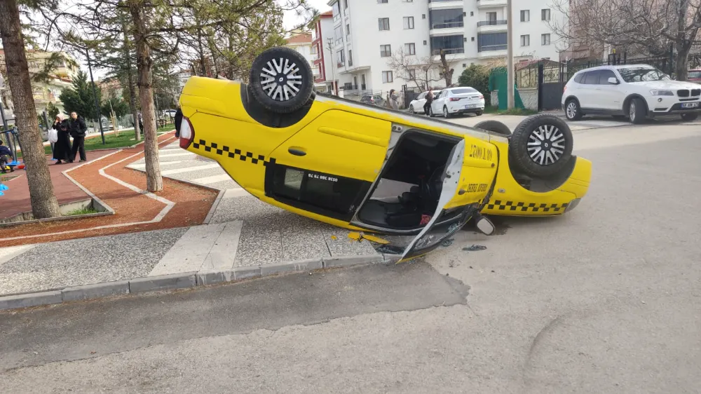 Şiddetli çarpışmanın etkisiyle ticari taksi savrularak takla attı ve ters döndü. Kazayı gören çevredeki vatandaşlar olayın ardından büyük panik yaşadı.