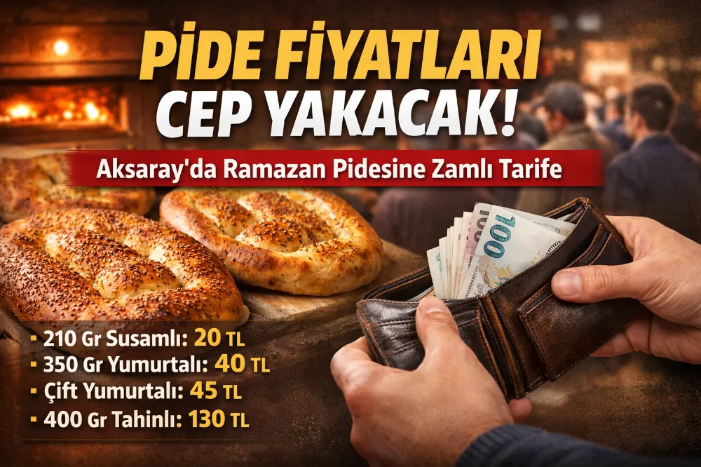 Aksaray’da 19 Şubat Perşembe günü başlayacak Ramazan ayı öncesinde pide fiyatları netleşti. Her yıl olduğu gibi bu yıl da vatandaşların en çok merak ettiği konuların başında gelen Ramazan pidesinin gramaj ve çeşitlerine göre yeni satış fiyatları açıklandı. Fiyat listesi kamuoyuyla paylaşılırken, artış oranları dikkat çekti.