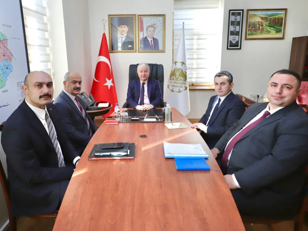 Aksaray Valisi Murat Duru, Vali Yardımcıları ile bir araya gelerek il genelinde yürütülen kamu hizmetlerine ilişkin kapsamlı istişarelerde bulundu. Toplantıda kamu yönetiminde ortak akıl ve koordinasyonun önemine dikkat çeken Vali Duru, insan odaklı, gönüllere dokunan, şeffaf ve eşitlik ilkesine dayalı bir yönetim anlayışıyla Aksaray’a hizmet edeceklerini ifade etti.