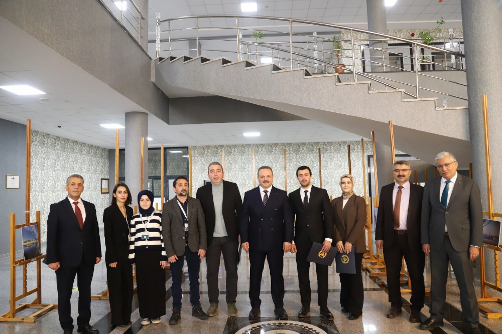 Sergilenen eserleri inceleyen Rektör Arıbaş, çalışmalar hakkında bilgi aldıktan sonra yarışmada dereceye giren katılımcılara ödüllerini takdim etti.