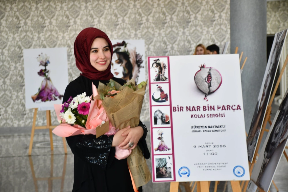 Aksaray Üniversitesi Sosyal Tesislerinde düzenlenen sergi, 8 Mart Dünya Kadınlar Günü dolayısıyla sanat ve düşünceyi bir araya getiren anlamlı bir etkinliğe sahne oldu. Mimarlık ve Tasarım Fakültesi’nin ev sahipliğinde gerçekleştirilen kolaj sergisinde, sanatçı Rüveyda Bayrakcı’nın kadın temalı eserleri ziyaretçilerin beğenisine sunuldu.
