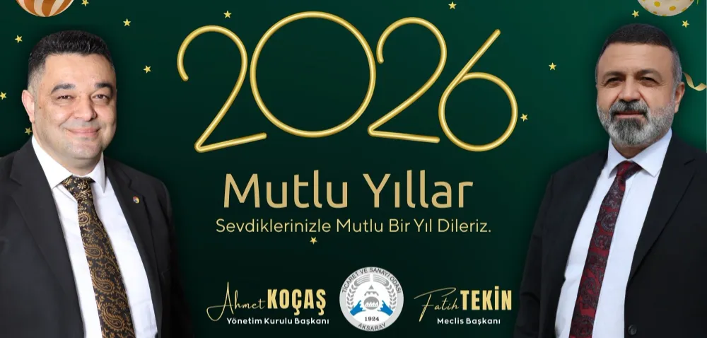 Aksaray Ticaret ve Sanayi Odası (ATSO) Başkanı Ahmet Koçaş ile ATSO Meclis Başkanı Fatih Tekin, 2026 yılı dolayısıyla ortak bir yeni yıl mesajı yayımladı. Mesajda, Aksaray iş dünyasının birlik ve beraberlik içerisinde yeni yıla daha güçlü hedeflerle girdiği vurgulandı.