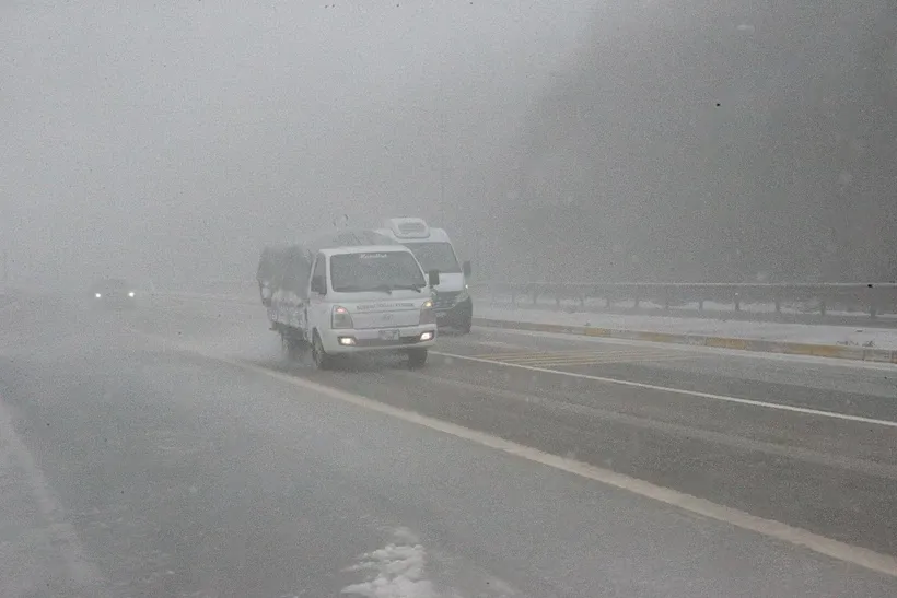 Yağış sonrası kısmen beyaz örtüyle kaplanan ve sisle birlikte görünürlüğün azaldığı güzergâhta Karayolları ekipleri kar küreme ve tuzlama çalışmalarını sürdürüyor.