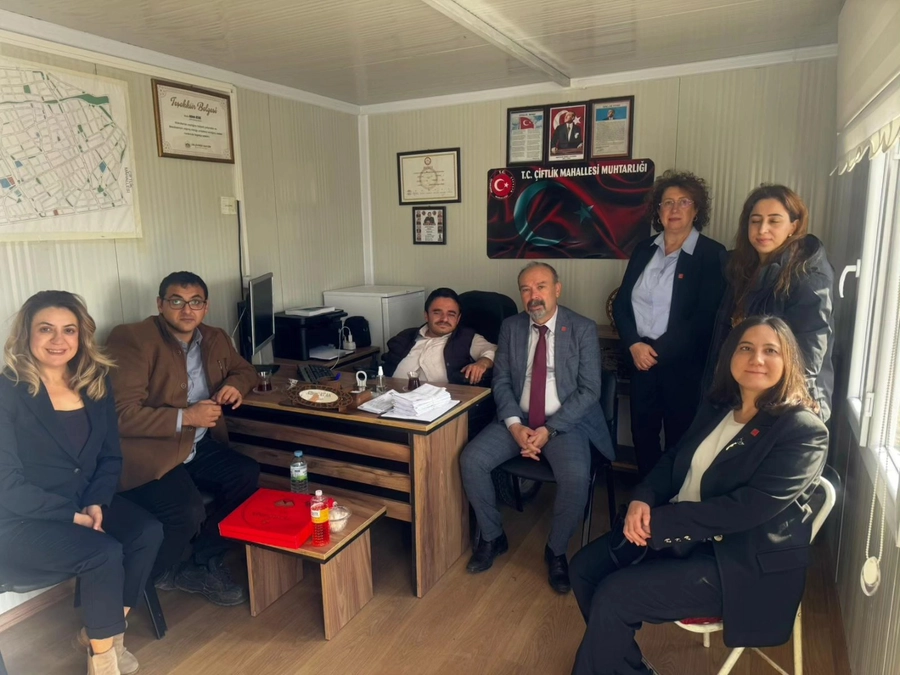 Ziyaret turu kapsamında Çiftlik Mahallesi Muhtarı Adem Atak da makamında ziyaret edildi. Yerel sorunların ele alındığı görüşmede mahalle sakinlerinin talepleri ve çözüm bekleyen başlıklar değerlendirilerek iş birliği vurgusu yapıldı.