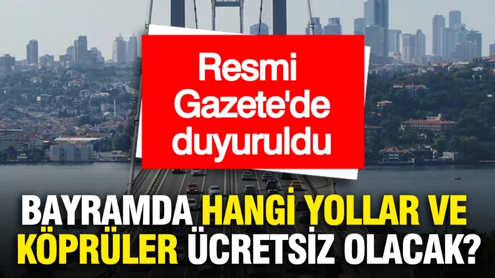 Resmî Gazete’de yayımlanan Cumhurbaşkanı Kararı’na göre, Ramazan Bayramı tatili boyunca, yap-işlet-devret projeleri dışındaki Karayolları Genel Müdürlüğü sorumluluğundaki otoyollar ile 15 Temmuz Şehitler ve Fatih Sultan Mehmet Köprüsü’nden ücretsiz geçiş sağlanacak. Karar, 19 Mart Perşembe saat 00.00’dan 22 Mart Pazar saat 24.00’a kadar geçerli olacak.