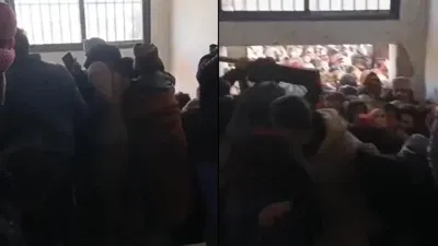 Deriye'de, terör örgütü YPG'nin bölgeyi terk etmesi sonrası halk, askerlik şubelerine hücum etti. Suriye Milli Ordusu'na katılmak isteyen genç erkeklerin başvuru yapılan şubeye girebilmek için kapıları kırdığı görüldü.