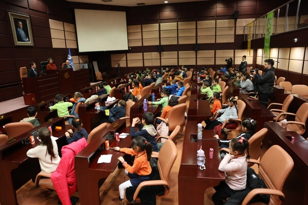 Meclis Salonu’nda gerçekleşen samimi buluşmada miniklerin heyecanı gözlerinden okunurken, Başkan Ünlüce de onların sorularını içtenlikle yanıtladı.