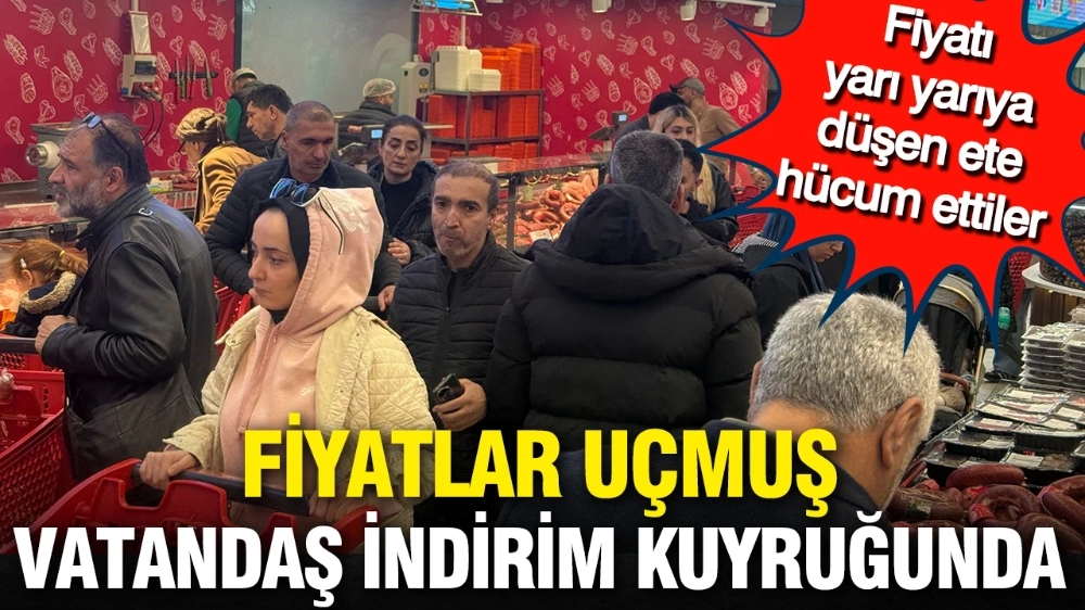 Asgari ücret ve emekli maaşlarının açlık sınırının altında kalmasıyla vatandaşlar, Ramazan Bayramı öncesi ucuz et ve temel gıda ürünleri için marketlere akın etti. Bir zincir marketin et fiyatlarını yarı yarıya düşürdüğünü duyan vatandaşlar alışverişe akın etti.