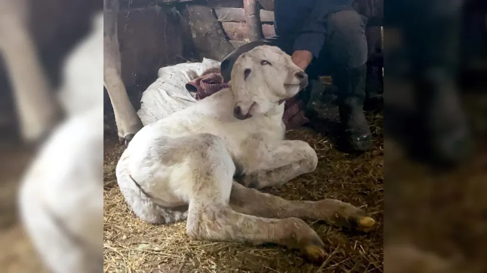 2 başı, 2 kulağı, 4 gözü bulunan buzağının sağlıklı olduğu kaydedildi.