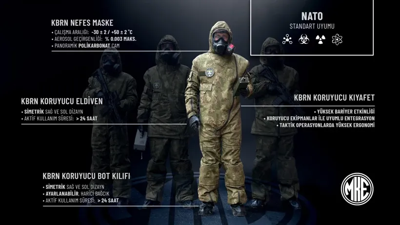Altında MKE mühendislerinin imzası bulunan koruyucu ekipmanlarının tamamı NATO standartlarına uygun olarak geliştirildi. Türkiye'nin KBRN alanındaki yetkinliğini ileri bir seviyeye taşıyarak, güvenlik güçlerine her senaryoda hazır olma kabiliyeti kazandıran bu sistem, yüksek ihracat potansiyeliyle de dikkat çekiyor.