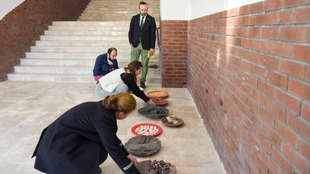 Seçilen eserlerin yerleştirilmesi sürecinde Rektör Yardımcısı ve Güzel Sanatlar ve Tasarım Fakültesi Dekanı Prof. Dr. Murat Yurdakul, Güzel Sanatlar ve Tasarım Fakültesi Seramik ve Cam Bölümü Bölüm Başkanı Doç. Leyla Kubat, Dr. Öğr. Üyesi Elif Gündüz ve Dr. Öğr. Üyesi Ozan Bebek’in katılımıyla bir değerlendirme toplantısı gerçekleştirildi. Mekan ve eserlerin buluşmasında, dersler kapsamında üretilen öğrenci çalışmaları hakkında görüş alışverişinde bulunularak, seçilen eserler, alınan ortak kararlarla belirlenen alanlarda eş zamanlı olarak yerinde kurgulandı.