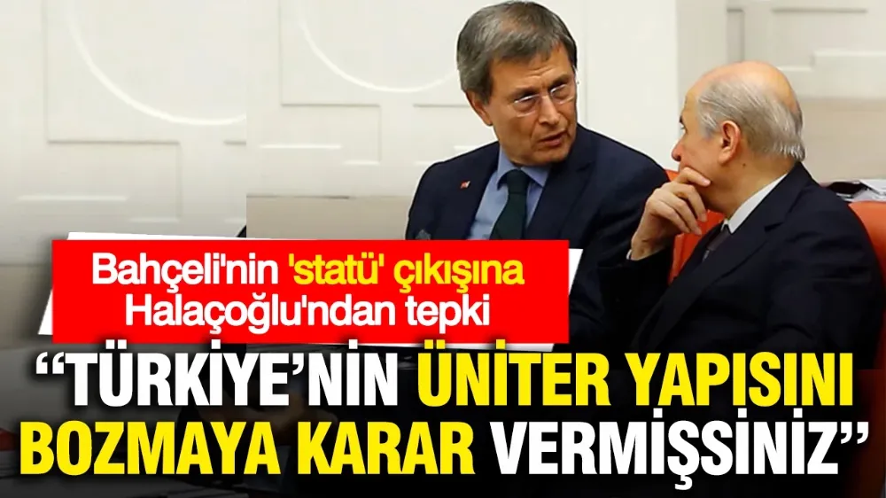Kutlu Parti lideri Yusuf Halaçoğlu sosyal medya hesabından yaptığı paylaşımda MHP lideri Bahçeli'nin 'statü' çıkışın yanıt verdi. Bahçeli'ye bu metinleri kimin yazdırdığını soran Halaçoğlu, "Bu söyledikleriniz Terörsüz Türkiye değil bölünen Türkiye'dir" dedi.