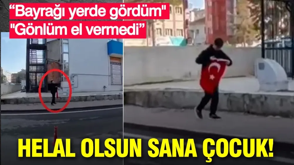 Kocasinan ilçesi Sahabiye Mahallesi’nde 14 yaşındaki çocuk, kaldırımda gördüğü Türk bayrağını koşarak yerinden kaldırdı. Daha sonrasında bayrağı katlayan çocuk, öperek ilerlemeye devam etti.