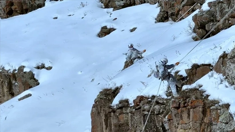Milli Savunma Bakanlığınca (MSB), Mehmetçiğin karla kaplı dağlarda aldığı dağcılık eğitiminden görüntüler paylaşıldı.