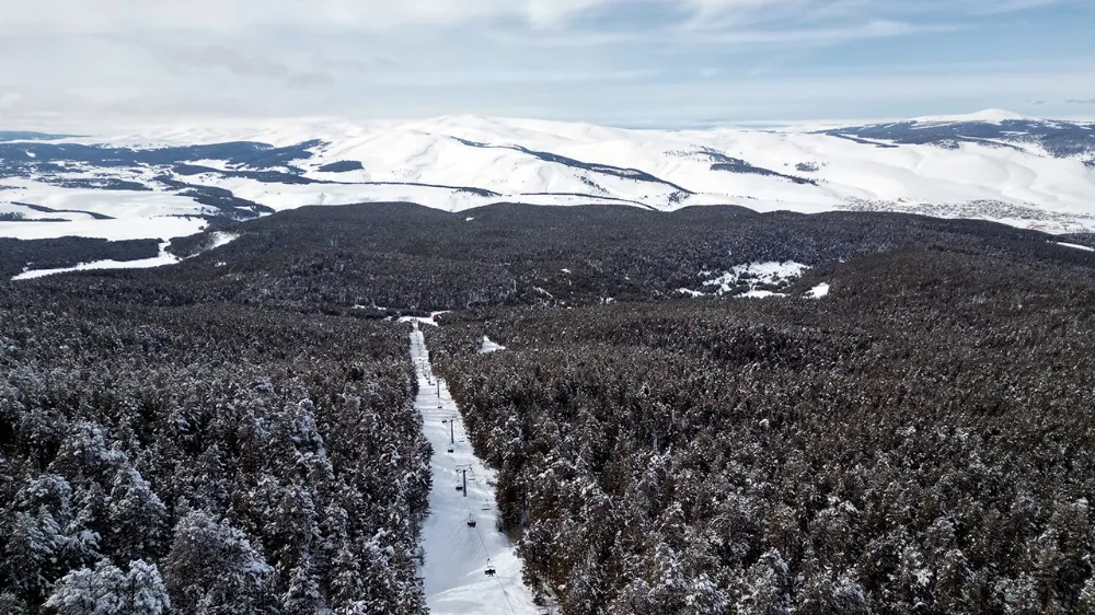 Sarıkamış’taki sarıçam ormanları, dronla görüntülendi.
