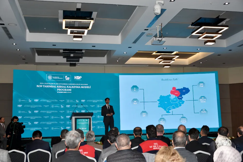 Konya Ovası Projesi (KOP) Bölge Kalkınma İdaresi Başkanlığı, hazırladığı “KOP Tarımsal Kırsal Kalkınma Modeli”ni geniş katılımlı bir toplantıyla kamuoyuna tanıttı. Sanayi ve Teknoloji Bakanlığı koordinasyonunda yürütülen buluşmada, bölgenin tarım ve kırsal kalkınma vizyonu; Konya başta olmak üzere Aksaray, Karaman, Niğde, Kırşehir, Kırıkkale, Nevşehir ve Yozgat illerinden gelen uzmanlar, çiftçiler, kooperatif temsilcileri, akademisyenler ve sektör paydaşlarıyla birlikte masaya yatırıldı. Programa TBMM Tarım, Orman ve Köyişleri Komisyonu Üyesi, AK Parti Konya Milletvekili Mehmet Baykan da katıldı.
