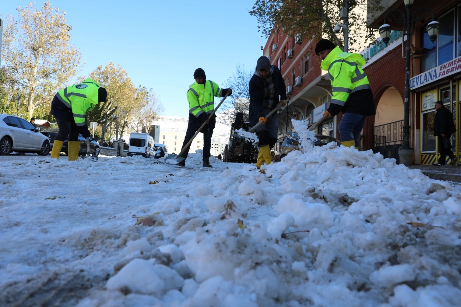 Kar yağışının ulaşımı olumsuz etkilememesi için yol açma operasyonları da hız kesmeden devam ediyor. Ekipler, ilçeye bağlı mahalle yollarını ulaşıma açmak amacıyla gece gündüz çalışıyor.