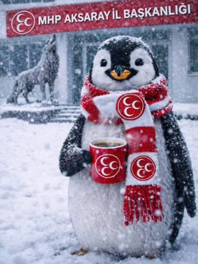 Milliyetçi Hareket Partisi Aksaray İl Başkanı Burhanettin Karataş, sosyal medya hesabından yaptığı paylaşım ile gündem oldu. İl başkanlığı binası önünde, yoğun kar örtüsü altında çay içen bir penguen görselinin kullanıldığı paylaşımda verilen mesaj, kısa sürede çok sayıda kullanıcı tarafından paylaşıldı ve yorumlandı.