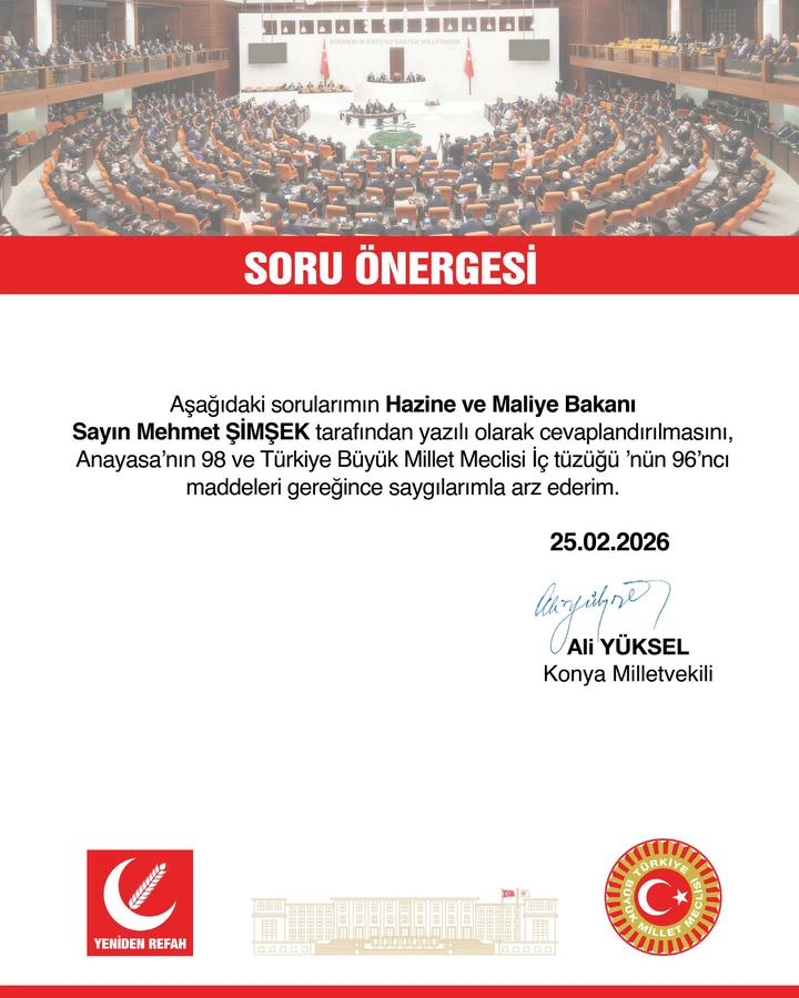 Konya Milletvekili Ali Yüksel, Demirören Grubu’nun Ziraat Bankası’ndan kullandığı ve geri ödenmediği iddia edilen krediye ilişkin Hazine ve Maliye Bakanı Mehmet Şimşek’in yanıtlaması istemiyle TBMM’ye yazılı soru önergesi sundu. Yüksel, kamu bankalarının tahsil edemediği milyarlarca liralık borç karşısında sessiz kalındığını belirterek, konunun yalnızca ekonomik değil, siyasi ve ahlaki bir mesele olduğunu vurguladı.