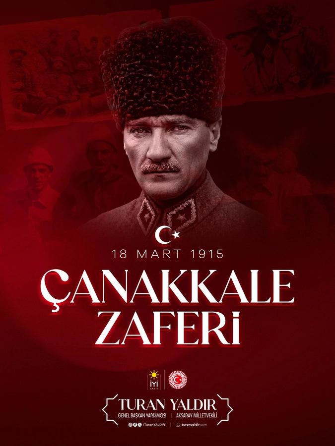İYİ Parti Mali İşlerden Sorumlu Genel Başkan Yardımcısı ve Aksaray Milletvekili Turan Yaldır, 18 Mart Çanakkale Zaferi’nin 111. yıl dönümü dolayısıyla yayımladığı mesajda, zaferin Türk milletinin bağımsızlık iradesinin en güçlü göstergesi olduğunu vurguladı. Yaldır’ın açıklamaları, günün anlam ve önemine dair güçlü vurgular içerdi.