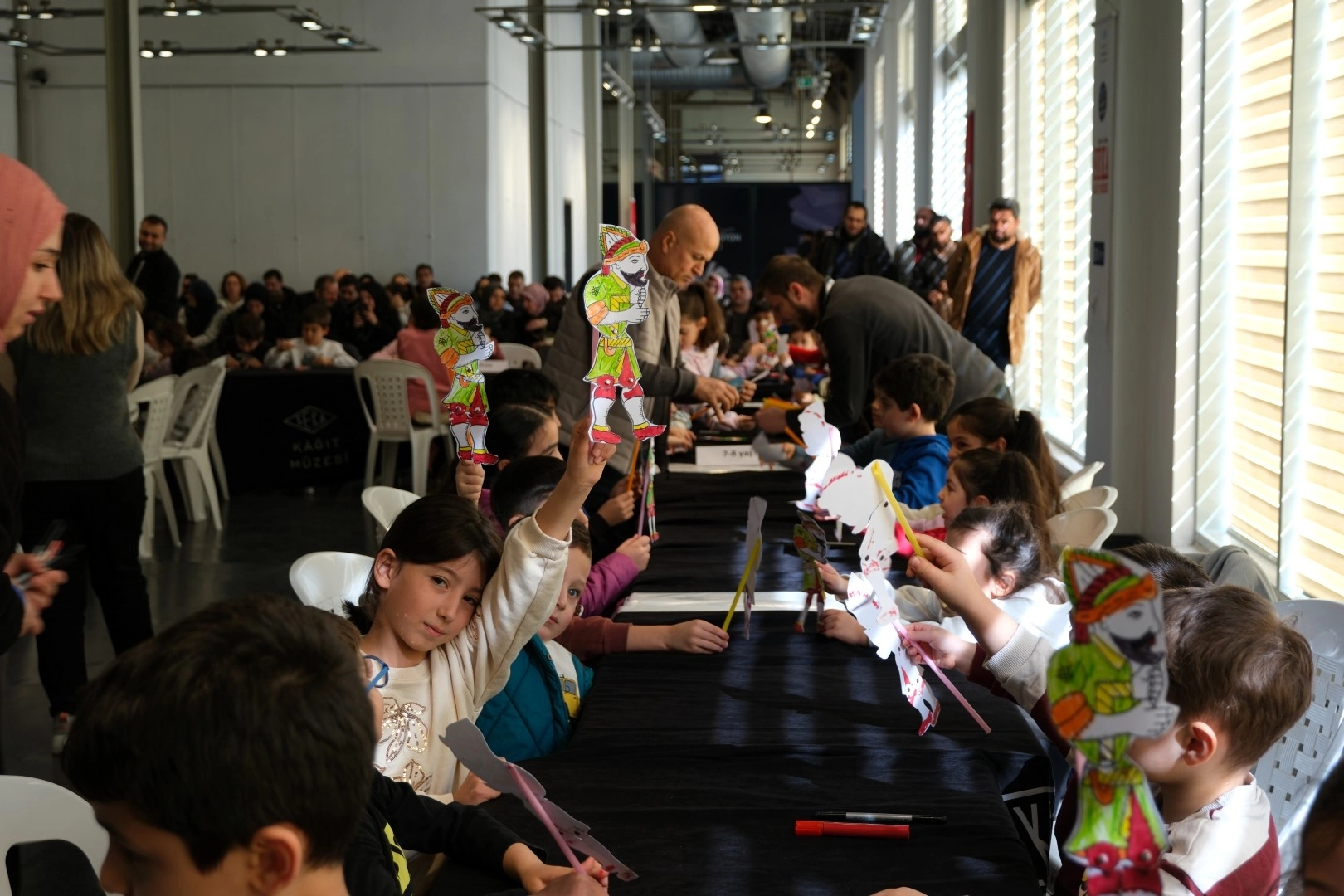 Gösterinin ardından Geçici Sergi Salonu’nda “Kukla Atölyesi” gerçekleştirildi. Atölye çalışmasında çocuklar, kâğıttan Karagöz ve Hacivat kuklaları tasarlayarak hem el becerilerini geliştirme hem de geleneksel sanatla birebir temas kurma fırsatı buldu. Eğitmenler eşliğinde yürütülen çalışmada Karagöz ve Hacivat’ın kültürümüzdeki yeri, tarihsel geçmişi ve gölge oyununun önemi çocuklara yaşlarına uygun bir anlatımla aktarıldı.