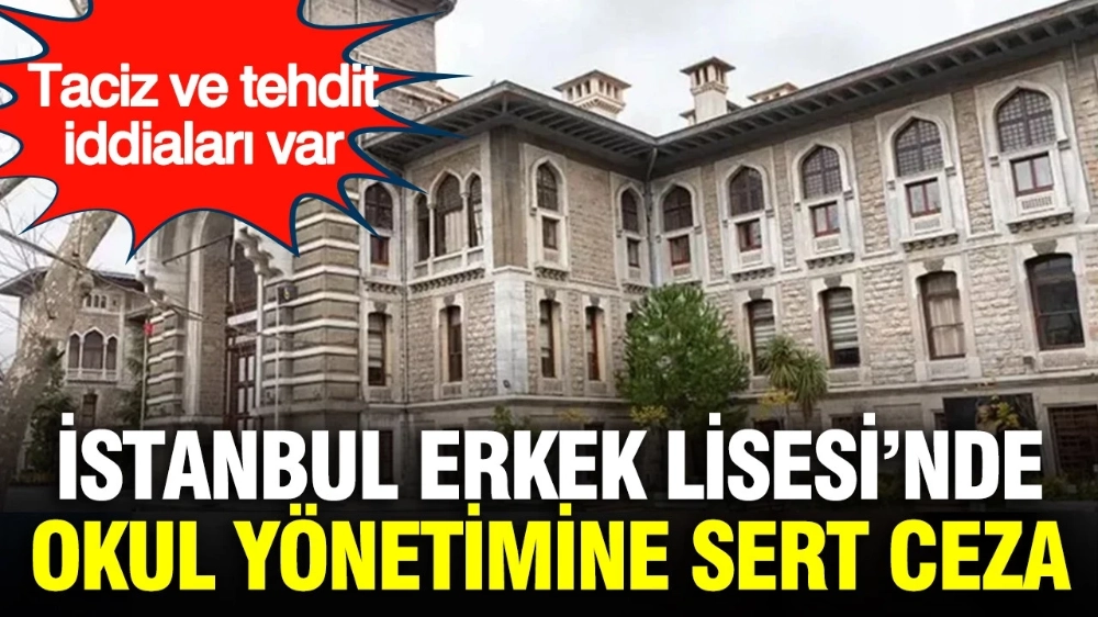 babaocagicom'un haberine göre, taciz ve tehdit iddiaları sonrası İstanbul Erkek Lisesi’nde okul yönetimine sert ceza İstanbul Erkek Lisesi’nde öğrenciler arasında yaşanan taciz ve tehdit olaylarıyla ilgili soruşturma tamamlandı. Müdür ve 4 idareci yöneticilikten alınarak başka okullara öğretmen olarak gönderildi. 7 kişinin de maaşından kesinti cezası verildi.