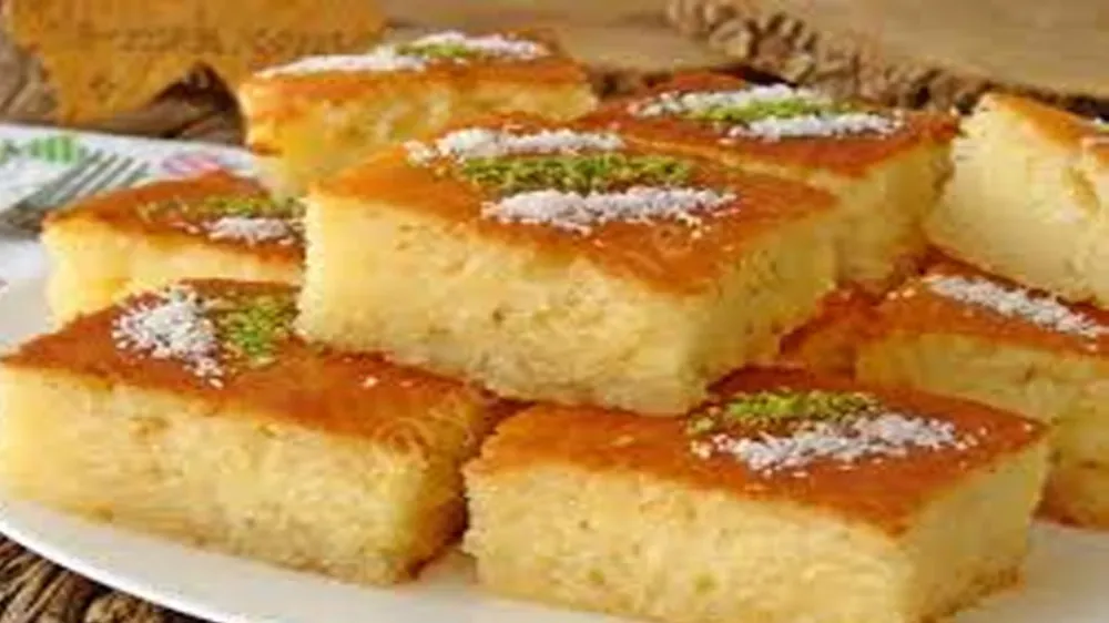 Küçük boy kare bir borcamı veya fırın kabını yağlayıp harcı dökün. Önceden ısıtılmış 180 derece fırında üzeri altın sarısı rengini alana kadar yaklaşık 30 dakika pişirin. Fırından çıkan sıcak tatlının ilk sıcağının çıkması için 2 dakika bekledikten sonra soğuk şerbeti her yerine gelecek şekilde dökün. Tatlı şerbeti tamamen çekip oda sıcaklığına geldiğinde üzerine Hindistan cevizi serperek servis yapabilirsiniz.