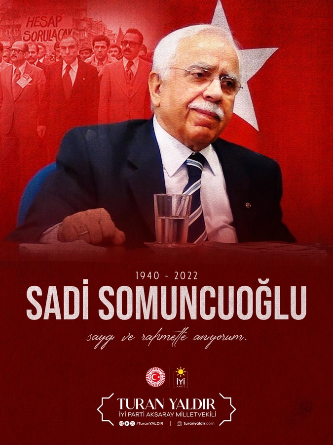 İYİ Parti Mali İşlerden Sorumlu Genel Başkan Yardımcısı ve Aksaray Milletvekili Turan Yaldır, eski Devlet Bakanı Sadi Somuncuoğlu’nun vefatının 4. yıl dönümünde yayımladığı mesajla merhumu saygı ve rahmetle andı. Yaldır, Somuncuoğlu’nun Türk dünyasına adanmış mücadelesinin bugün de yol göstermeye devam ettiğini vurguladı.