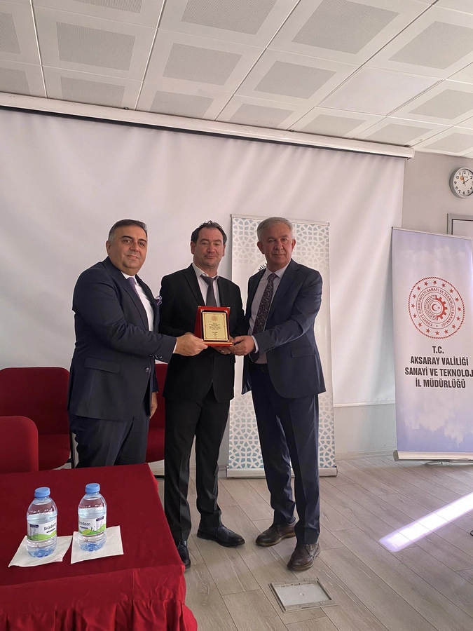 Program sonunda, Aksaray İl Sanayi ve Teknoloji Müdürü Ferdi Gürel, Turgay Karakaş’a katkılarından dolayı teşekkür ederek plaket takdim etti.