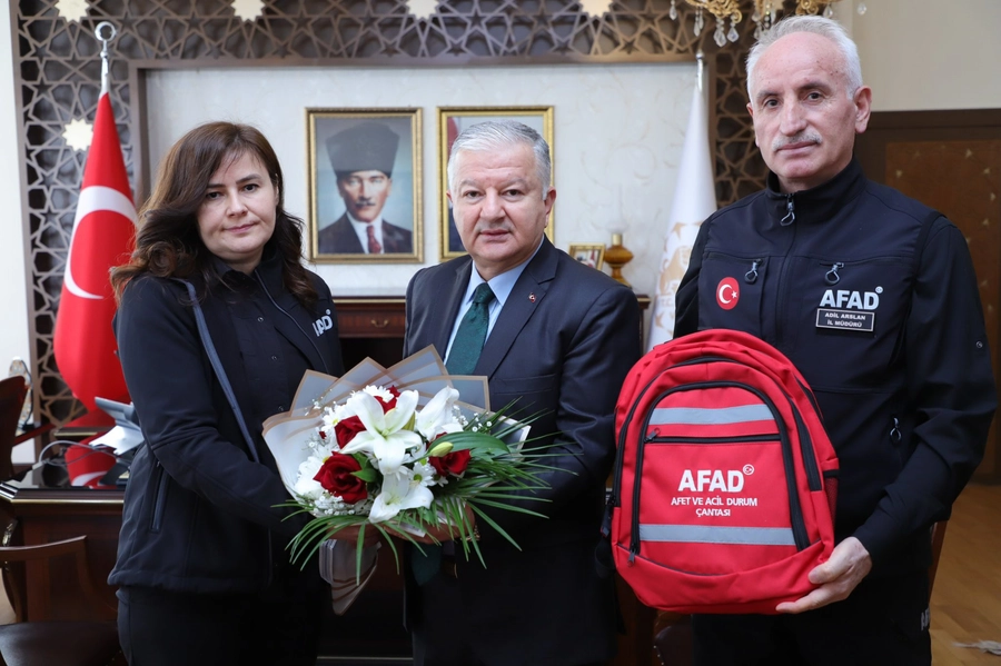 Aksaray Valisi Murat Duru, Deprem Haftası dolayısıyla AFAD İl Müdürü Adil Aslan ve beraberindeki heyeti makamında kabul etti. Ziyarette konuşan Vali Duru, depremin Türkiye’nin en acı gerçeği olduğunu vurgulayarak, bilimsel çalışmalar ve bilinçli toplum yapısıyla afet zararlarının en aza indirilebileceğini belirtti. Farkındalık eğitimlerinin önemine dikkat çekti.