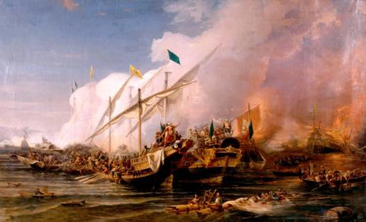 655’te Bizans ile Zâtü’s-Savârî Deniz Savaşı’nda karşı karşıya gelen Müslümanlar Bizans donanmasını yenerek Akdeniz’de deniz üstünlüğünü ele geçirdi.
