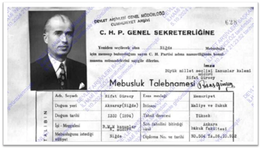 VE AKSARAYLI NİĞDE VEKİLİ RİFAİ RİFAT GÜRSOY (1894-1967)