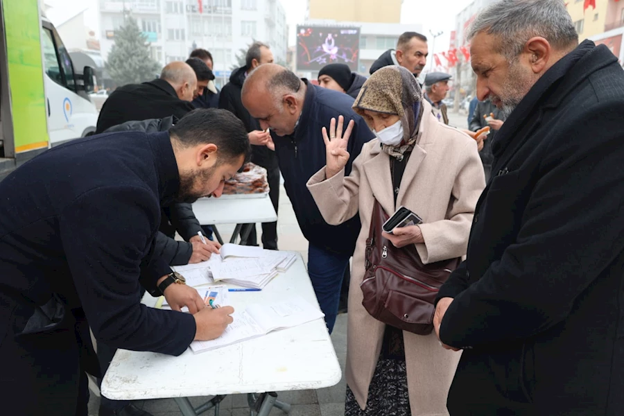 Bugün Aksaray 15 Temmuz Milli İrade Meydanı’nda ilginç bir tabloyla karşılaştık. AK Parti Aksaray Teşkilatı, bu soğuk ve sisli Aralık gününde halka tatlı dağıtarak üye kaydı toplamaya çalıştı. Tatlılar tepsilerle geldi, tezgâhlarda düzülüp sergilendi. Kurallar basitti: Üye ol, tatlını al.