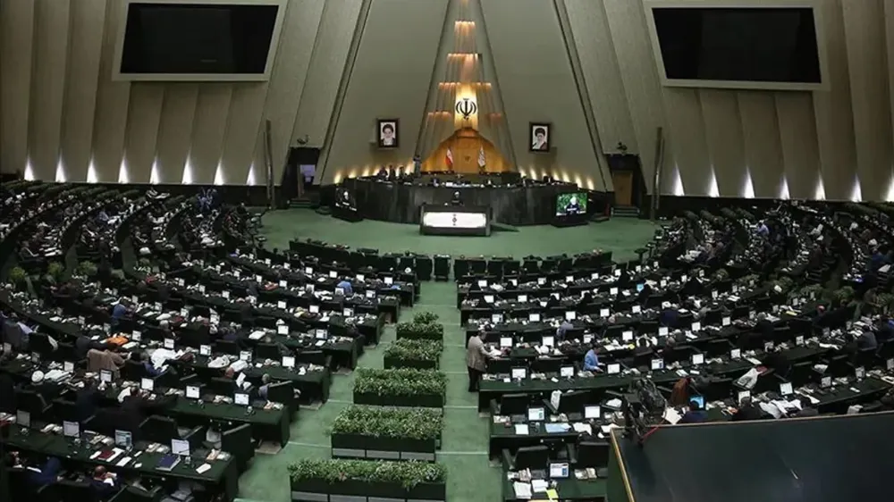 Mecliste Devrim Muhafızları Ordusu askeri kıyafetleriyle yerlerini alan milletvekilleri ABD ve AB karşıtı sloganlar attılar.