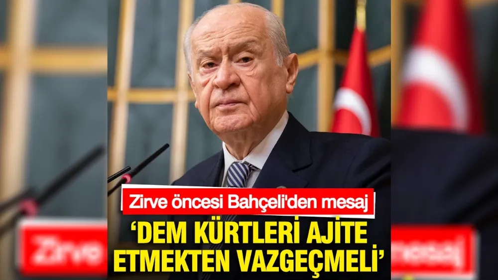 Bahçeli'nin mesajında "DEM Parti Kürt kardeşlerimizi ajite etmekten, Siyonizm’in değirmenine su taşımaktan, küllenen ateşi maşa gibi karıştırmaktan derhal vazgeçmelidir" ifadelerini yer aldı.