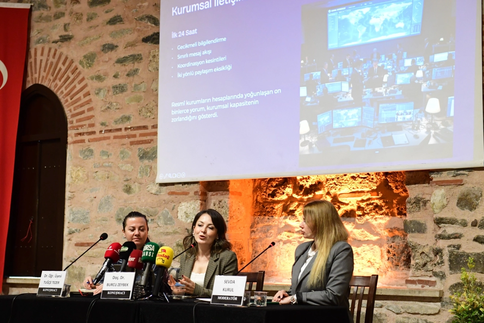 BURSA (İGFA) - Bursa'da Ördekli Kültür Merkezi’nde Sevda Kurul’un moderatörlüğünde düzenlenen programda, alanında uzman isimler bilgi ve deneyimlerini katılımcılarla paylaştı. Doç. Dr. Burcu Zeybek, “Afet ve Deprem Sürecinde İletişim ve Dezenformasyon” başlıklı sunumuyla, kriz anlarında doğru bilginin hayati önemini vurguladı.
