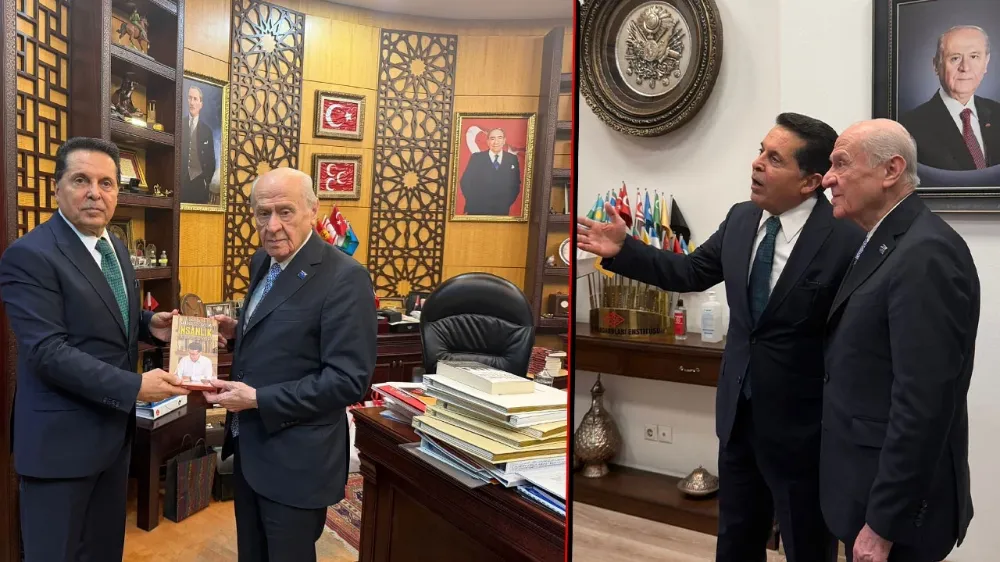 Özer Bahçeli'ye "İnsanlık" ve "Köklere Yolculuk" kitaplarını hediye etti.
