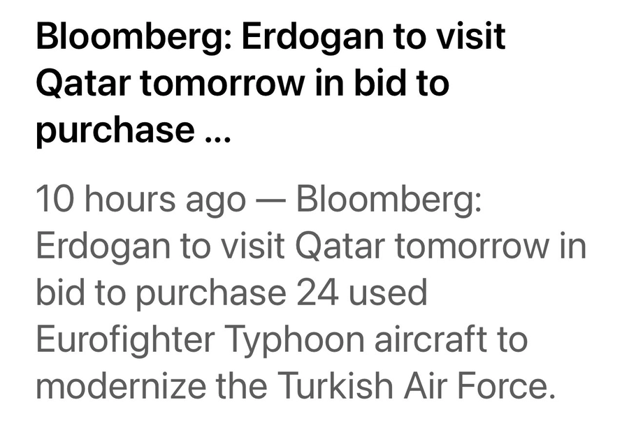 Uluslararası basında yer alan haberlere göre, Türkiye’nin Eurofighter Typhoon savaş uçağı filosunu genişletmek için yeni girişimlerde bulunduğu, bu kapsamda Katar’daki mevcut Eurofighter uçaklarının Türkiye’ye satılmasının gündeme geldiği iddia edildi. Bazı kaynaklar, Katar’ın elinde bulunan 24 adet Eurofighter’ın Türkiye’ye devredilmesi için iki ülke arasında görüşmelerin sürdüğünü ileri sürdü.