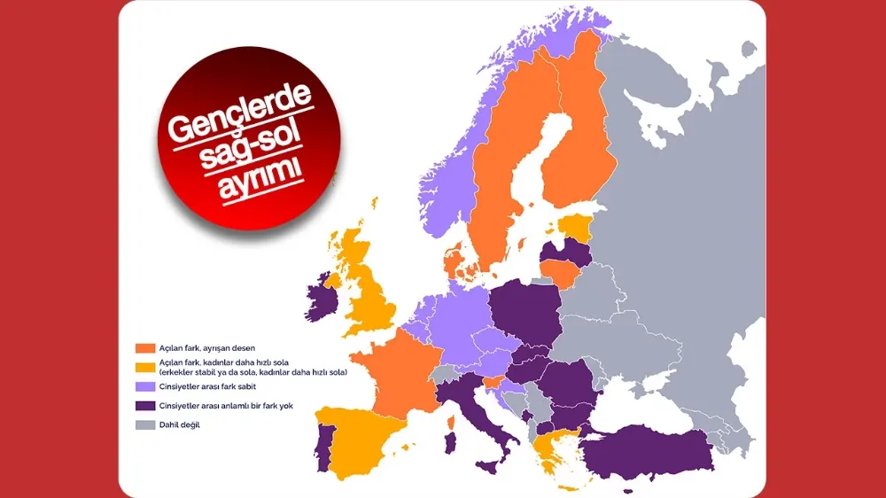 Türkiye ise geçmişte kadınların görece daha muhafazakar olduğu ancak ortalamada erkeklerle farkın giderek azaldığı ve bugün anlamlı bir farkın gözlenmediği ülkeler arasında yer alırken; Birleşik Krallık ise farkın açılmasının daha çok kadınların daha hızlı biçimde sola kaymasından beslendiği ayrı bir desene işaret ediyor. Gençlerin sol-sağ konumlanmasında cinsiyet farkının düzeyi ve zaman içindeki seyri ülkelere göre oldukça farklılaşıyor: