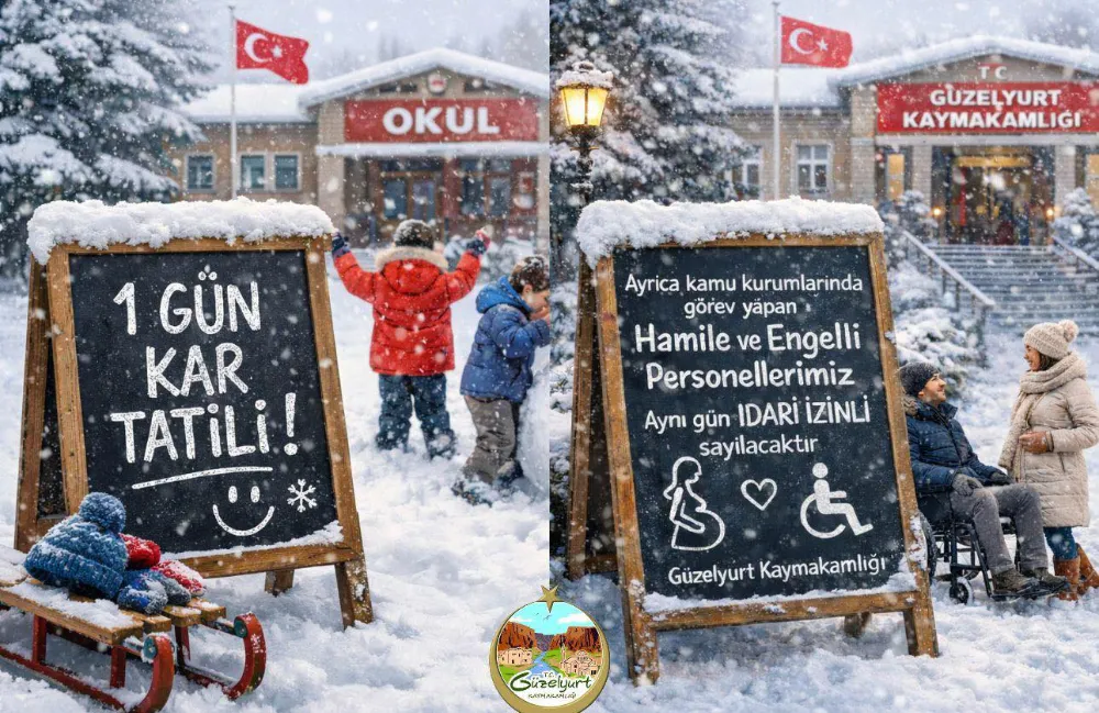 Güzelyurt Kaymakamı Süleyman Arat, Meteoroloji Genel Müdürlüğü’nden alınan son tahminler doğrultusunda ilçede beklenen yoğun kar yağışı nedeniyle önemli bir karar alındığını duyurdu. Yapılan açıklamaya göre, 12 Ocak 2026 Pazartesi günü Güzelyurt genelinde tüm örgün ve yaygın eğitim kurumlarında eğitim-öğretime 1 (bir) gün süreyle ara verildi.