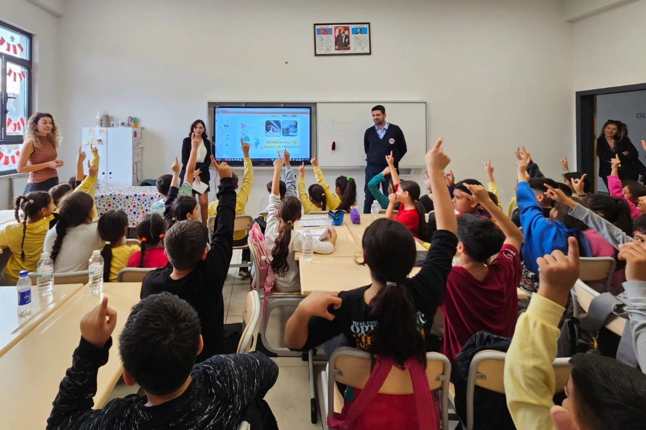 “Gözünüz Metro ve Tramvayda Olsun” başlıklı sunumda metro ve tramvayı kimlerin kullandığı, araçlara biniş kuralları ve yolculuk sırasında dikkat edilmesi gereken güvenlik adımları öğrencilere aktarıldı. Programa bir vatman da katılarak öğrencilerin sorularını yanıtladı. Eğitim programının farklı okullarla devam edeceği bilgisi verildi.