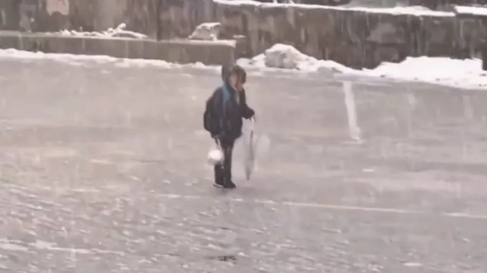 Bitlis’in Mutki ilçesinde kar altında tek başına İstiklal Marşı okuyan bir öğrencinin görüntüsü duygulandırdı.