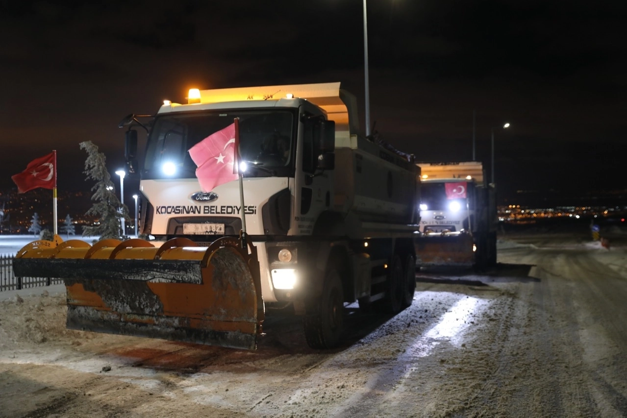 Kayseri Kocasinan Belediyesi ekipleri, yaya yolları, ana arterler, cadde, sokak ve meydanlarda kar temizleme çalışmalarını 24 saat esasına göre kesintisiz bir şekilde sürdürüyor.