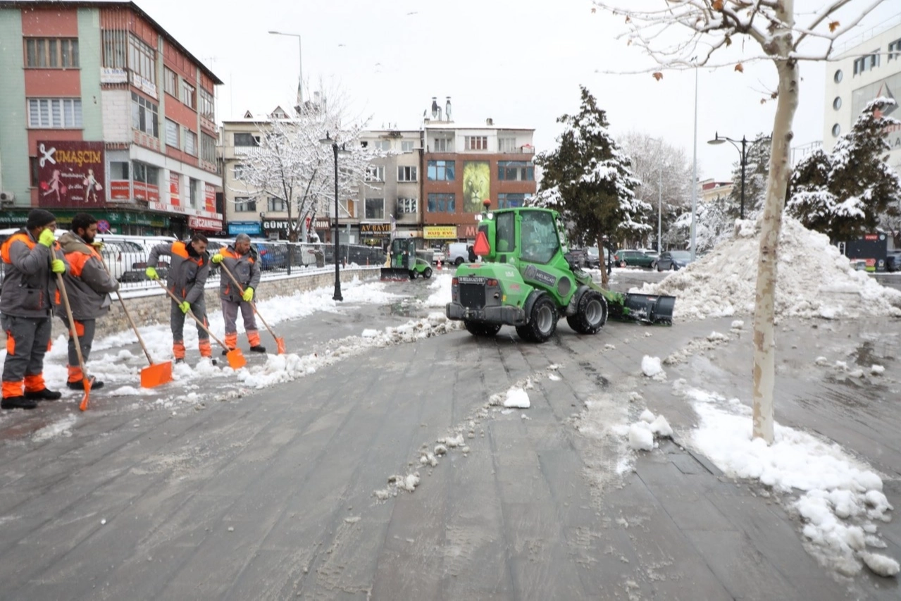 Kayseri Melikgazi Belediyesi, karla mücadele ekipleri ilçe genelinde merkez ve kırsal mahalleler olmak üzere ulaşımın aksamaması amacıyla kar küreme, kaldırım temizliği ve tuzlama çalışmalarını aralıksız sürdürüyor.