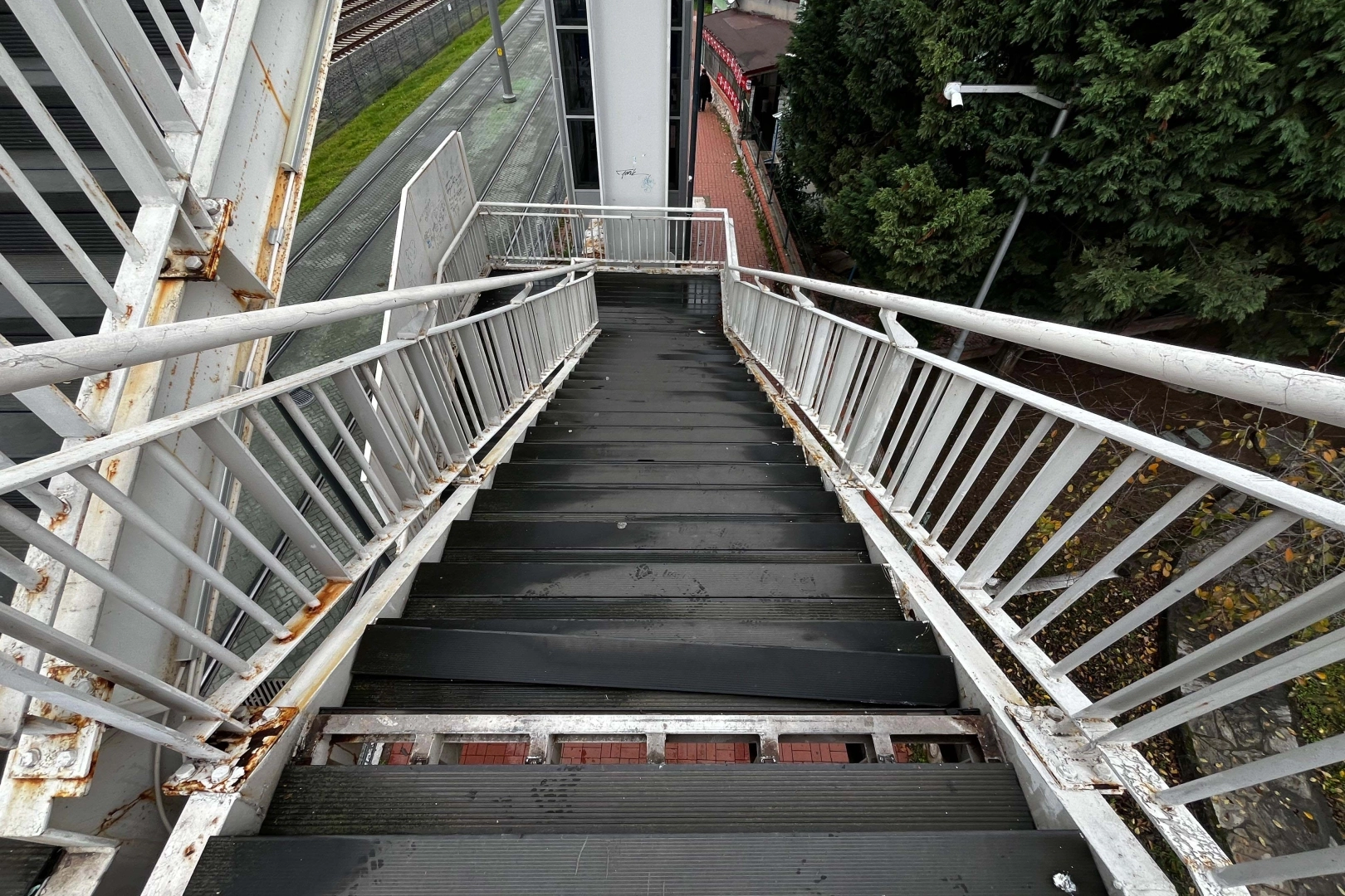 Üstgeçitte tespit edilen yapısal sorunları gidermek için çalışma yapan ekipler, eskiyen ve kırılan merdivenlerde tadilat ve tamirat çalışması yaptı.