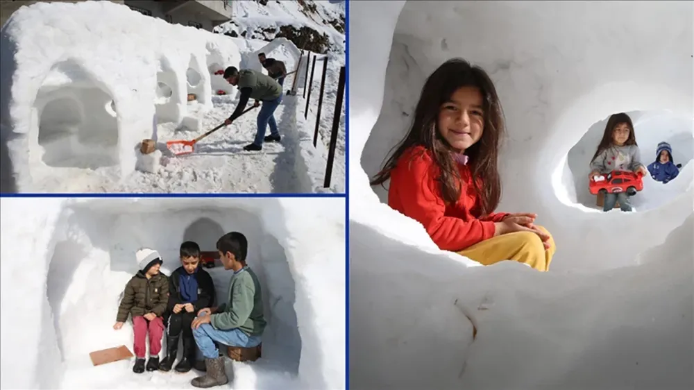 Adıyaman’ın Çelikhan ilçesine bağlı Korucak köyünde yoğun kar yağışının ardından vatandaşlardan Yasin Bozdemir, 2 metreye ulaşan kar kalınlığını fırsata çevirerek çocuklara sürpriz yaptı.