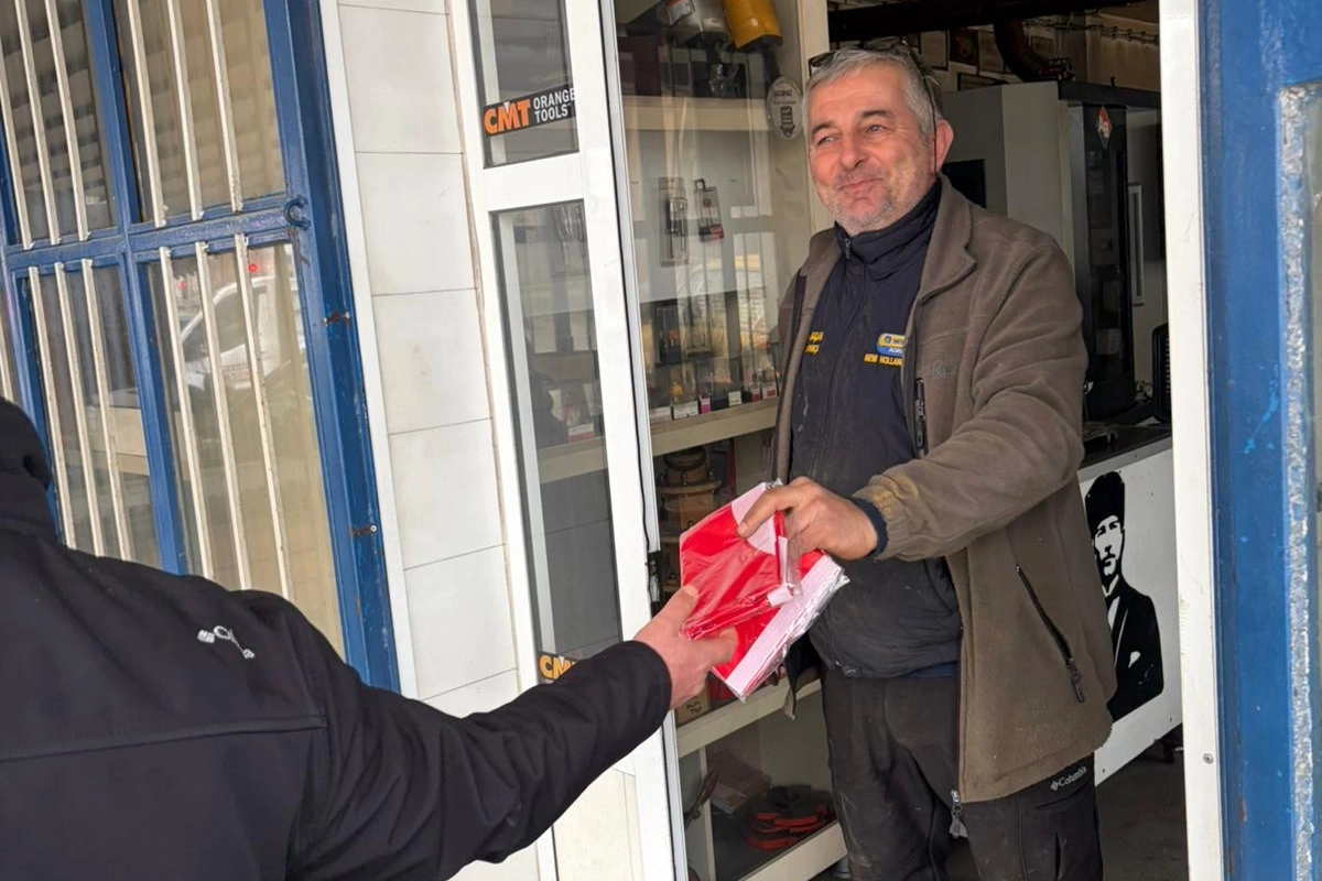 MUĞLA (İGFA) - Muğla Büyükşehir Belediyesi, Türk bayrağına yönelik gerçekleştirilen saldırının ardından anlamlı bir dayanışma örneği sergiledi. Büyükşehir Belediyesi ekipleri, esnaf ve vatandaşlara Türk bayrağı dağıtarak milli değerlere sahip çıkma mesajı verdi.
